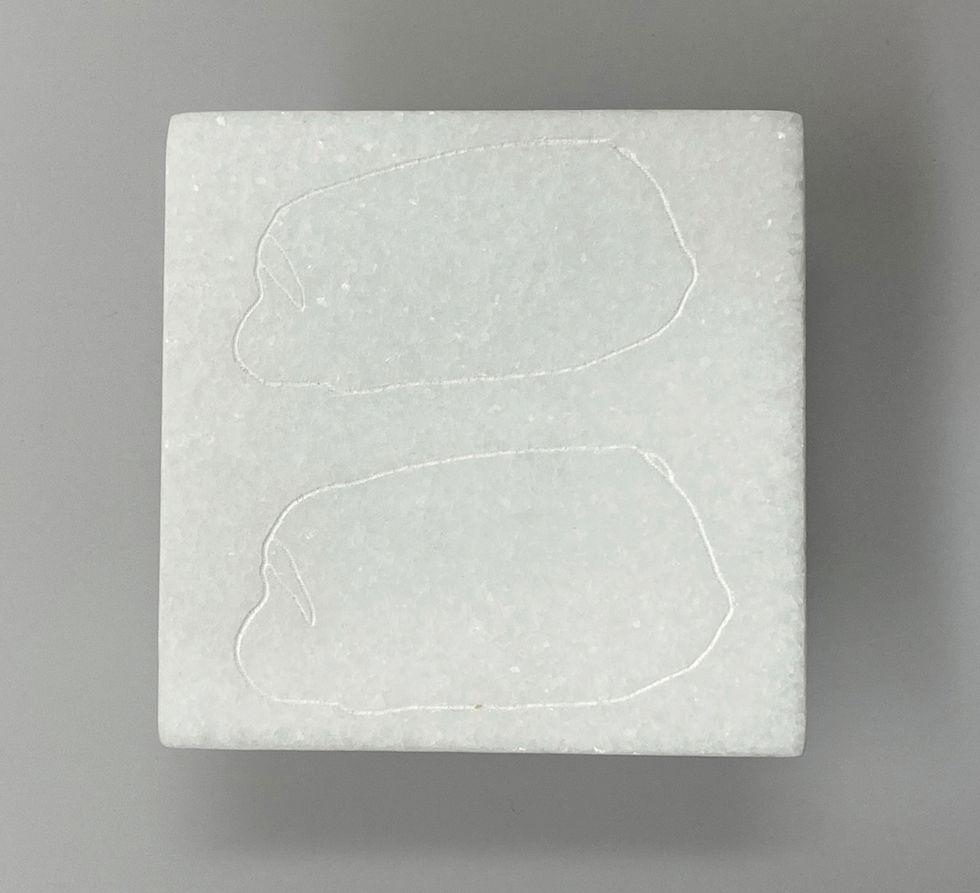 Tegningene er preget inn i overflaten med laserstråling. Marmorplatene er hvit marmor fra Kina. Platene er 9cmx9cm og 1cm tjukk.